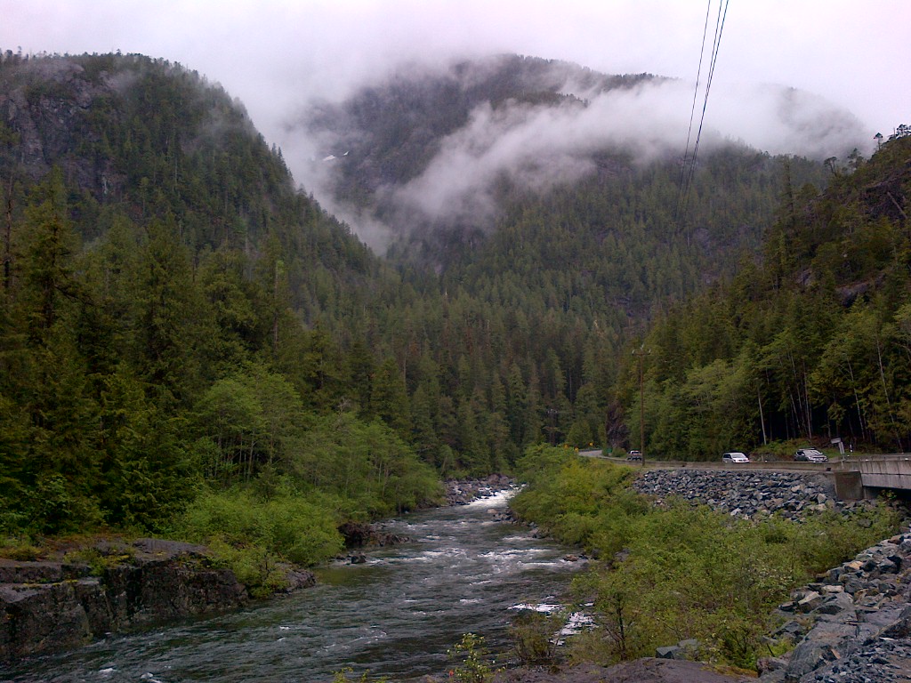 I took this picture on our way to Tofino, its a surfer’s dream place. We stopped on the road just to view the breathtaking coherence of the river with the rocks and the tress on the mountain reaching to the sky, melting the medley of a picturesque nature you would like to bask in for while.